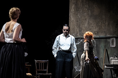 Darin einbeziehen lassen sich die Duisburger Philharmoniker mit Ralf Lange am Pult. Ihm und dem Dutzend Musikern gelingt es, der freien Tongebilden folgenden Musik mit Klezmerkolorit, irrwitzigen Tempowechseln und lyrisch-zarten Stimmungsbildern die Weinberg-typische Architektur zu vermitteln, die auch Die Passagierin charakterisiert. Agieren die Philharmoniker gekonnt als Tutti, fällt jedem der Instrumentalisten auch eine eigene Aufgabe zu. Den Blechbläsern eh, der Flöte immer dann, wenn es gilt, den jiddischen Humor zu illustrieren. Ganz speziell noch dem Klavier, was den Bogen spannt zu weiteren verfolgten jüdischen Komponisten, Paul Abraham etwa und Kurt Weill.