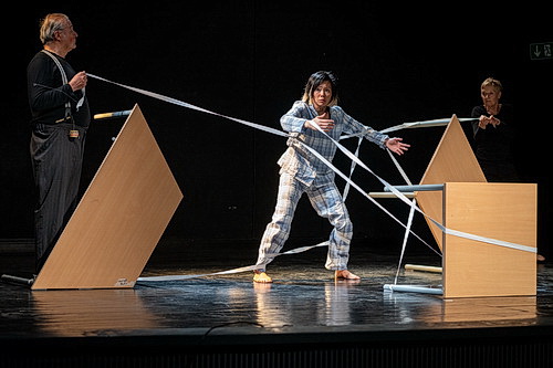 Paulas Reisen, der Kinderbuchklassiker von Pauls Maars, ist Gegenstand des nächsten Projekts, das Ende Mai im Duisburger Landschaftspark mit Schülern aus Duisburg-Marxloh gezeigt werden soll. Paulas fantasievolle Reise durch das Land, in dem alles Eckige verboten ist und das nächste Land, in dem alles Runde verboten ist, wird quasi als Vorbereitung in acht Vorstellungen im Elly-Heuss-Knapp-Gymnasium zahlreichen Marxloher Kindern aus Grundschulen und Kitas präsentiert, wofür sie im Unterricht zwei Lieder einstudierten, die sie auch kräftig mitsingen. Dieses Mitmachkonzert wird von den Tänzerinnen Petra Jebavy und Cynthia Nislyama, dem Schauspieler Rainer Besel und Antonia Yordanova am Klavier gestaltet. Wobei die Kinder viele Gelegenheiten bekommen, auf der Bühne in das Geschehen einzugreifen.