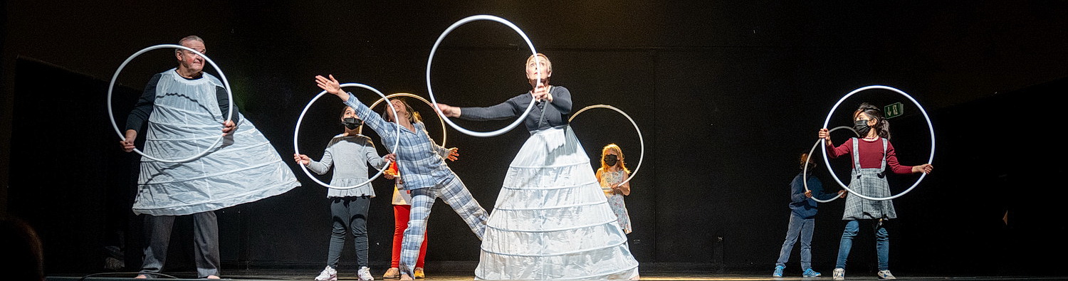 Paulas Reisen, der Kinderbuchklassiker von Pauls Maars, ist Gegenstand des nächsten Projekts, das Ende Mai im Duisburger Landschaftspark mit Schülern aus Duisburg-Marxloh gezeigt werden soll. Paulas fantasievolle Reise durch das Land, in dem alles Eckige verboten ist und das nächste Land, in dem alles Runde verboten ist, wird quasi als Vorbereitung in acht Vorstellungen im Elly-Heuss-Knapp-Gymnasium zahlreichen Marxloher Kindern aus Grundschulen und Kitas präsentiert, wofür sie im Unterricht zwei Lieder einstudierten, die sie auch kräftig mitsingen. Dieses Mitmachkonzert wird von den Tänzerinnen Petra Jebavy und Cynthia Nislyama, dem Schauspieler Rainer Besel und Antonia Yordanova am Klavier gestaltet. Wobei die Kinder viele Gelegenheiten bekommen, auf der Bühne in das Geschehen einzugreifen.