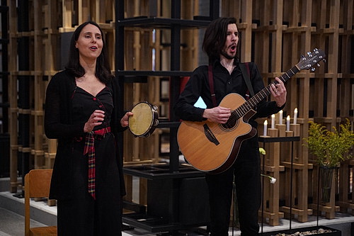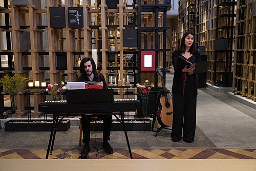 Im früheren Altarraum sind die Stuhlreihen auf einem kleinen Podest aufgebaut, die bis auf den letzten Platz besetzt sind, ebenso wie die übrigen Plätze im Kolumbarium. Unmittelbar vor dem Podest haben die beiden Musiker ihre Instrumente aufgebaut. Thomas nimmt zunächst am E‑Piano Platz, um Williams bei seinem Vortrag von Vaga luna, che inargenti, zu Deutsch etwa wandernder Mond, getaucht in Silber, einer Arietta von Vincenzo Bellini zu begleiten. Danach werden die Plätze getauscht, damit Williams Thomas bei ihrem Ständchen von Johannes Brahms untermalen kann. Williams behält den Platz am Klavier, während die beiden Er und Sie sowie Ich bin dein Baum von Franz Schubert im Duett intonieren. Danach entschwindet Thomas, obwohl es doch so schon weitergehen könnte. Nach einem kleinen Klavier-Zwischenspiel von Williams tritt Huy noch einmal auf, um zu verkünden, dass er vergessen habe, Thomas als indisponiert anzukündigen. Eine vollkommen überflüssige Anmerkung, wie sich zeigen wird.