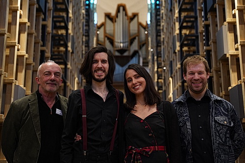 Und dann schlägt das Duo völlig neue Töne an. Es gibt fünf überwiegend irische Songs, die die beiden sehr lyrisch darbieten. Nach den beiden Duetten Star of the County Down und Next Market Day wartet schon die nächste Überraschung. Für Williams‘ eigene Komposition Days of Old, mit der er an seine Großmutter erinnert, zieht sich Thomas zwischen die Urnen zurück, um ihn dort – was sonst? Ist doch normal, dass Opernsängerinnen Querflöte spielen – mit zarten Tönen zu unterstützen. Schließlich erklingt die Flöte auch noch von der Orgelempore. Zart umschmeicheln die Töne die Asche der Verstorbenen, und wenn im Publikum wirklich jemand sitzt, der an das ewige Leben glaubt, wird derjenige gerade innerlich ein Danke jubeln. Und Lobgesänge anstimmen, wenn Thomas und Williams von den einander gegenüberliegenden Balkonen Will ye go, lassie, go im Duett singen.