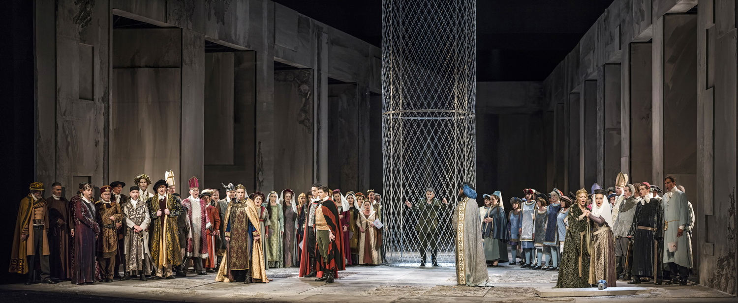 Hoch respek­tabel sind auch die Leistungen des Solis­ten­en­sembles. Allen voran Margrethe Fredheim, die eine fulmi­nante Irmengard mit durch­schlags­kräf­tigem, höhen­starkem Sopran singt. Claudia Sorokina als Agnes besitzt diese vokale Kraft nicht, doch harmo­niert sie mit ihrer Bühnen­mutter im schönsten Zwiegesang. Stilis­tisch sehr unter­schiedlich präsen­tieren sich die beiden Tenöre: hier der lyrisch empfindsame Bernhard Berchtold, dort der heldisch auftrump­fende Todd Wilander. Fabelhaft die tiefen Männer­stimmen: Máté Sólyom-Nagy singt den Kaiser mit großer Autorität, Kakhaber Shavidze den Erzbi­schof mit balsa­mi­scher Würde und Siyabulela Ntlale den franzö­si­schen König Philipp August mit mächtiger Attacke.