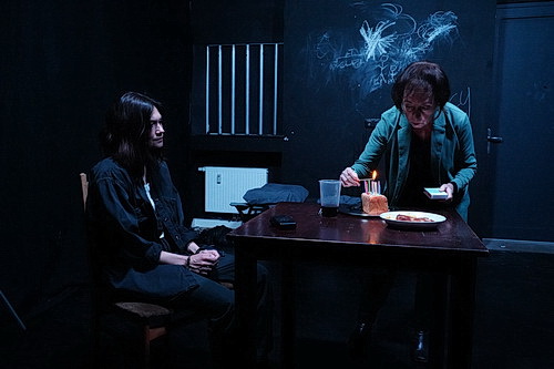 Die Herausforderungen, die Münter sich selbst auferlegt hat, sind beeindruckend. Neben einer satten Textmenge gibt es wütende Schattenkämpfe, Tanzeinlagen oder Sit-ups mit Text. Keine Anstrengung scheint ihr zu viel, um ihrer Verzweiflung Ausdruck zu verleihen. Die einzige, die Zugang zum Raum zu haben scheint, ist überraschend Rebecca, Lucys Mutter. Sie versorgt ihre Tochter mit Essen, bringt anlässlich des Geburtstags ihres Sohnes Kuchen vorbei. Dass Marion Schüller, die die Mutter verkörpert, dabei auf Sicherheitsmaßnahmen Wert legt, erscheint sinnvoll. So muss sich Lucy beispielsweise Handschellen anlegen, um mit Rebecca gemeinsam den Kuchen zu essen.