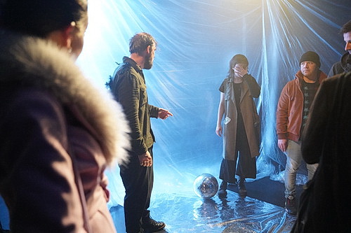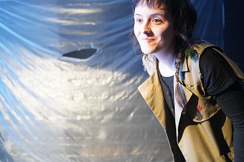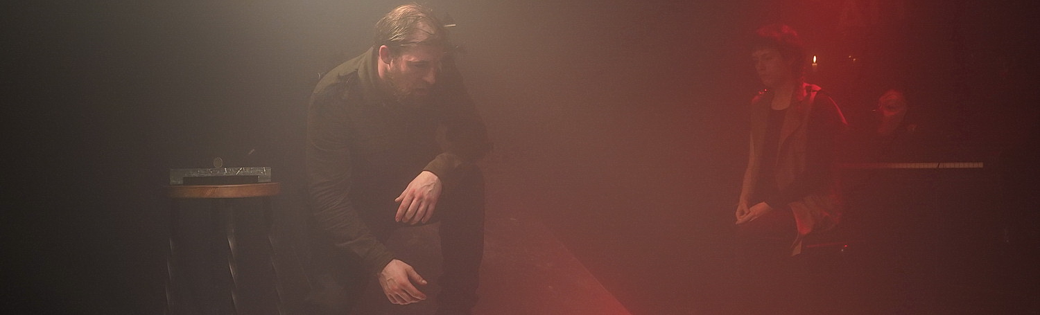 Mit dieser Frage hat sich Schauspieler und Autor Christian Freund gemeinsam mit der Darstellerin Nadia Ihjeij beschäftigt. Ihr Ziel scheint gewesen zu sein, möglichst viel Energie zwischen Bühne und Publikum fließen zu lassen. Und das ist gelungen. Die Zuschauer kommen als Zaungäste an eine Baustelle. Das Eingangsareal ist mit Bauzäunen abgesperrt. Überall hängen Malerfolien. Vor der Fensterfront ist die Technik aufgebaut, auf der Dominik Hertrich heute Abend alle Register spielen wird. Dazwischen ist ein schmaler Flur freigehalten, auf dem die beiden Akteure den Abend eröffnen.