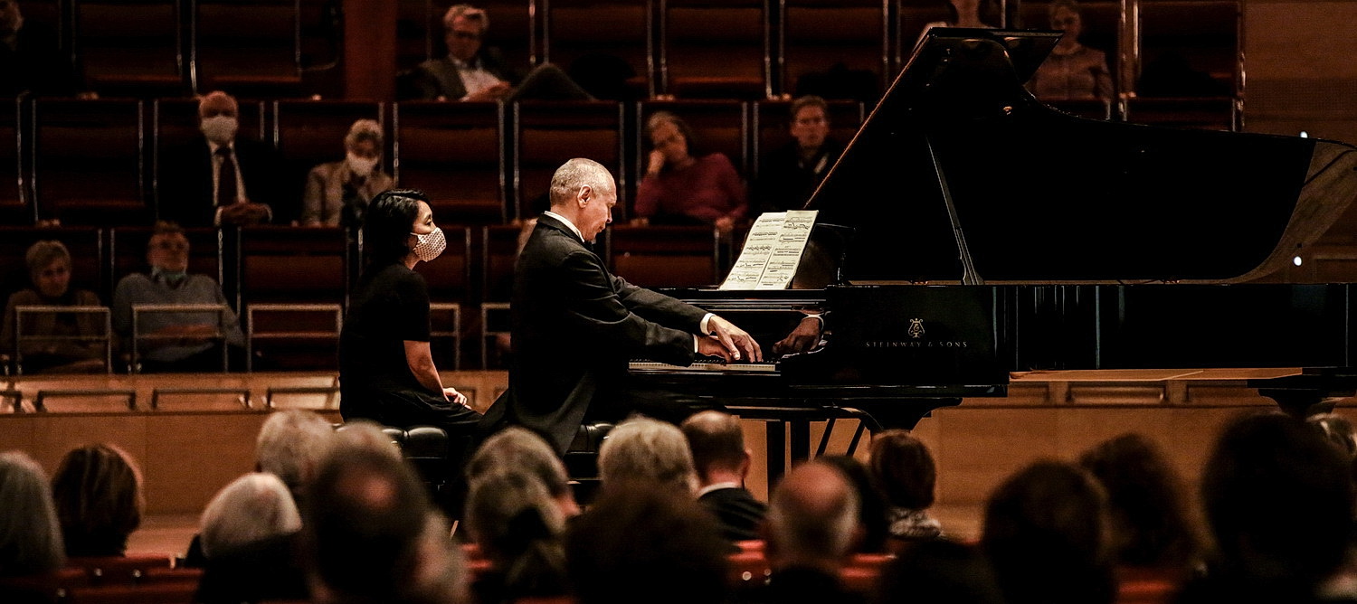 Das Publikum folgt dem anstren­genden Vortrag mit äußerster Disziplin und reagiert so begeistert, dass es – ohne Erfolg – eine Zugabe einfordert, die nach dem anspruchs­vollen Ravel-Beitrag jedoch unange­bracht wäre.
