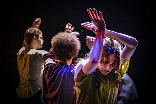 So, wie sie die Synkope als Leitmotiv für den Abend auser­koren hat. Musika­lisch wie medizi­nisch ist die Synkope eine rhyth­mische Verschiebung. Bei der Musik sorgt sie für inter­es­sante Effekte, beim Herzen für einen Notarzt­einsatz. So weit lässt es Söderborg nicht kommen. Statt­dessen entlässt sie die Tänzer, allen voran Louise Dahl, in die Mysterien der Nacht. Die stark rhyth­mus­ori­en­tierte Musik dazu hat Dehendrik Lechat Willekens kompo­niert. Daraus lassen sich ungewöhn­liche Bewegungen ableiten – wenn auch nicht allzu viele. Die werden von Pol Matthé in quadra­ti­schen Licht­feldern einge­fangen, wenn die Tänzer nicht selbst mit zwei Spots spielen. Je öfter die Wieder­ho­lungen Einzug halten, desto mehr übernimmt das Ensemble die Musik in Form von englisch­spra­chigem Gesang. So entsteht nach und nach der Eindruck einer überdi­men­sio­nierten Musical-Szene. Dem Publikum gefällt das, es kann sogar einige Szenen lustig finden. Nach 50 Minuten ist der Spaß vorbei. Der Nacht sind offenbar keine weiteren Schat­tie­rungen hinzuzufügen.