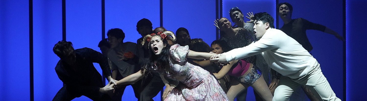 Hervor­zu­heben, und das ist für eine Studenten-Produktion besonders wichtig, ist die geschlossene Ensemble-Leistung, bei der jeder sein Bestes gibt und zum Gesamt­erfolg beiträgt. Auch wenn sich Jeanne Jansen als Eurydike, Anton Levykin als Pluto oder Junhyuk Lee als Jupiter mit ihren extrem dankbaren Rollen besonders vorteilhaft präsen­tieren können.