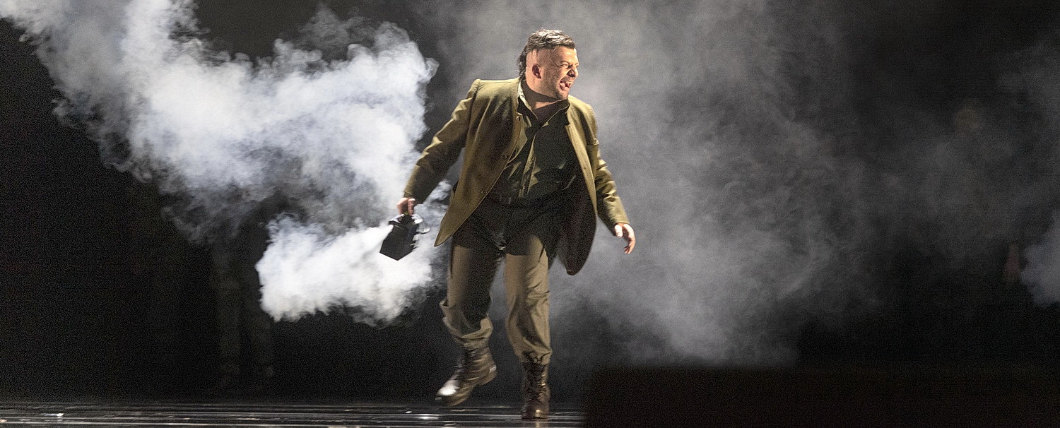 Verdi hat viele Opern mit kalter und schwarzer Musik geschrieben. Neben dem Macbeth ist auch die andere große Shakespeare-Vertonung zu nennen, Otello, mit dem genialen Libretto von Arigo Boito. Es wäre nicht verwunderlich gewesen, wenn die Neuinszenierung am Aalto-Theater Essen genauso ungemütlich und kalt ausgefallen wäre wie das Premierenwetter. Aber Roland Schwab hat in der Musik Verdis auch das hitzig-hochkochende Element entdeckt und das mit dem Ober-Fiesling der Oper schlechthin verknüpft. Jago, grandios verkörpert von Nikoloz Lagvilava, ist hier kein gemeiner Brunnenvergifter, sondern ein dämonischer Brandstifter der menschlichen Psyche. Sein nihilistisches Credo, seine tiefe Überzeugung, ist quasi sozialer Brennstoff und daher steht der Garten des zweiten Aktes plötzlich in Flammen.
