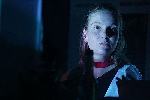 Nach der nächsten Pause bleibt es poetisch-ernst, wenn Birnkott und Svea Menne von Hart-Kollektiv ihre Auftritte verquicken. Die Shakespeare-Interpretin lässt es mit Lavinia aus Titus Andronicus jetzt blutrünstig angehen. Schließlich werden der nach 407 Wörtern erst die Hände abgehackt und dann die Zunge herausgeschnitten. Damit wird das entsetzliche Leid sichtbar, ohne Chance darauf, sich zu äußern. Eher angedeutete Blutflecken verfehlen ihre Wirkung nicht. Und damit wird der dreiteilige Auftritt, der sich so dramaturgisch geschickt auf den Nachmittag verteilt, vollends zum Erfolg, an den Menne nahtlos anknüpft. Wenn ich gewusst hätte nennt die studierte Theatertherapeutin ihren Monolog, den sie selbst als „ein romantisches Selbstverhör im Kosmos diffuser Gefühle“ bezeichnet. Mit dem Text ihrer Kollektivpartnerin Cora-Miró Fiedler vermag die Darstellerin das Publikum rasch in ihren Bann zu ziehen. Auf dem Boden in der Mitte der Bühne eine Kerze und ein Blumengebinde. Daneben ein Tisch. Zwei Mikrofone. Das reicht für den eindringlichen Auftritt. „Wenn ich gewusst hätte, Alice, wie hart dein Blick sein kann, im Gegenlicht, wenn niemand hinsieht“. So beginnt die Nachrede auf die Verstorbene zu den Instrumentalklängen von Nothing Else Matters von Apocalyptica, die schließlich, nachdem die Blumen herausgetragen sind, in das „Selbstverhör“ am Tisch in Handfesseln mündet. Nach einer kurzen Einleitung singt Menne Take Me to Church von Hozier, ein Text, der Sex als Kirche verherrlicht. Wenig hoffnungsfroh, aber dem intensiven Vortrag die Krone aufsetzend, lässt der Text alles offen. „Ich habe nicht die Wahl. Ich kann nicht entscheiden, wer ich bin. Ich bin. Schuld?“ Menne kann auf ganzer Linie überzeugen und wird zu Recht vom Publikum gefeiert.