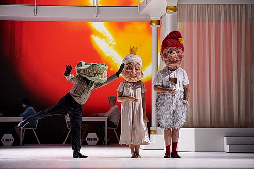 Im weiteren Handlungsverlauf wird auch nicht ganz klar, warum inmitten der elysischen Szenerien Pamina, Papageno und Monostatos mit überdimensionierten Köpfen einer Prinzessin, eines Kasperles und eines Krokodils in der Ästhetik des Handpuppentheaters erscheinen. Dabei könnte die stilisierende Dynamik eines Kasperletheaters sicherlich ein interessantes Regiekonzept sein. Genauso wie das 1970-er-Jahre-Wohnzimmer, das als kleine, intime Guckkastenbühne nach der Pause an die Rampe geschoben wird und hinter dessen bürgerlicher Fassade sich die wahren Dramen abzuspielen scheinen. Unter anderem auch ein inzestuöser Übergriff Sarastros auf seine Tochter Pamina.