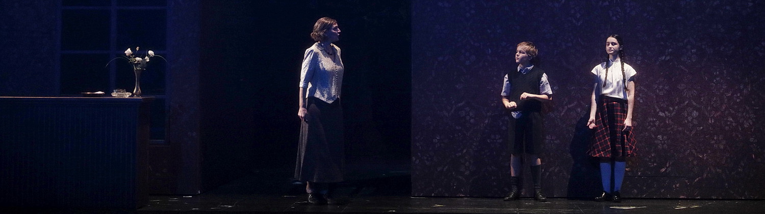 Hilfreich ist natürlich, wenn man bei solchem Aufwand über ein entspre­chendes Ensemble verfügt, dass die Bemühungen mitträgt. Und Intendant Carp kann stolz auf seine Sänger sein. Ist er auch, wie er unumwunden zugibt. Die Stimmen sind überwäl­tigend. Wirkt Joshua Kohl als Erzähler rollen­be­dingt noch kaum überzeugend, darf er seine Stärken als Peter Quint voll ausspielen und begeistert stimmlich wie darstel­le­risch. Judith Braun intoniert Ms Grose tadellos, und ihrem Habitus zufolge möchte man die Haushäl­terin gleich einstellen. Solch gutes Personal findet man eben selten. Die Gefühls­ein­brüche und Gewis­sens­bisse, die zuneh­mende Hilflo­sigkeit der Gouver­nante verkörpert Solen Manguené überzeugend intensiv. Die großen stimm­lichen Anfor­de­rungen der Rolle hat sie eher nebenbei im Griff, und beim Piano am Ende vergessen die Zuschauer im Saal das Atmen. Ebenso anspruchsvoll, wenn auch in der kleineren Rolle, zeigt sich Inga Schäfer als höchst attraktive Miss Jessel. Bei dieser Stimme aller­dings geriete die Körper­lichkeit schnell in Verges­senheit, wenn Carp nicht auch mit diesem Pfund wucherte und der toten Gouver­nante viel Erotik mitgibt. Die Profes­sio­na­lität der Berufs­sänger wird aller­dings von den Kindern noch überboten. Britten hat sich bei den Anfor­de­rungen an die Kinder nicht zurück­ge­halten. Aber Thomas Heinen als Miles und Katharina Bierweiler als Flora lassen sich davon nicht beein­drucken und singen makellos, was sie neben ihrem Schüler­leben eingeübt haben. Der einzige Kinder­bonus kommt, wie gesagt, von Carp, der die beiden zum Still­stand beim Singen verdonnert. Einfach grandios, was es an diesem Abend auf die Ohren gibt.
