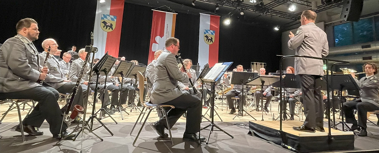 Es ist eines der renommiertesten symphonischen Blasorchester in Deutschland, das Gebirgsmusikkorps der Bundeswehr aus Garmisch-Partenkirchen. Ganz gleich, ob Gelöbnis oder Großer Zapfenstreich, Feierstunde oder Festakt, das Gebirgsmusikkorps bietet den passenden musikalischen Rahmen. Mit traditionsreichen Märschen in ihrer gesamten Vielfalt ist das Orchester in ganz Bayern unterwegs, um militärische Anlässe zu begleiten. Bei Benefizkonzerten zeigt das Gebirgsmusikkorps, dass es außer Märschen auch mit sinfonischer Blasmusik, bayerischen Klängen oder Pop und Swing begeistern kann. Diese Vielfalt zeigt das Orchester heute Abend bei einem Benefizkonzert in der Luitpoldhalle in Freising, die mit etwa 500 Zuschauern bis auf den letzten Platz gefüllt ist. Es ist bereits das 20. Benefizkonzert, das das Musikkorps in Freising gespielt hat, und seine Auftritte sind traditionelle Höhepunkte im Veranstaltungskalender der Stadt Freising.