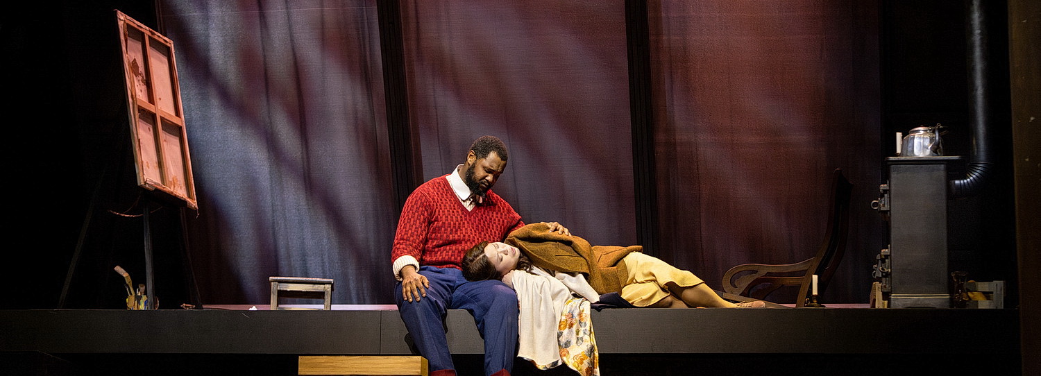 An ihrer Seite Khanyiso Gwenxana, der seit 2018, aus Dresden kommend, festes Ensemblemitglied am MiR ist. Seine bislang größte Rolle als Rodolfo meistert er über weite Strecken souverän. Man merkt ihm die Erleichterung nach dem ersten Szenenapplaus förmlich an, und in der Folge vermag er den Ansprüchen an die Gesamtpartie gerecht zu werden. Seine besondere Stimmfärbung ist wohlig temperiert, in einzelnen Passagen aber noch etwas schmal. Umso überraschter ist man von seinem zuweilen kraftvollen Forte in der Höhe, das insgesamt aber noch weiterer Pflege bedarf.