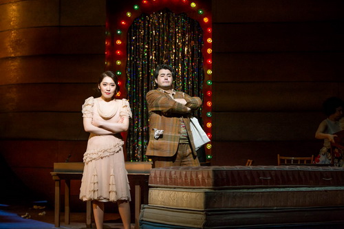 Dongmin Lee als Adina gefällt durch ihre geschmeidige, ebenfalls mühelos ansprechende Stimme, die zwar noch stark dem Soubrettenfach verhaftet ist, aber die inneren Wandlungen der Figur fassettenreich zum Ausdruck bringen und auch noch durch perfekte Koloraturkünste begeistern kann.