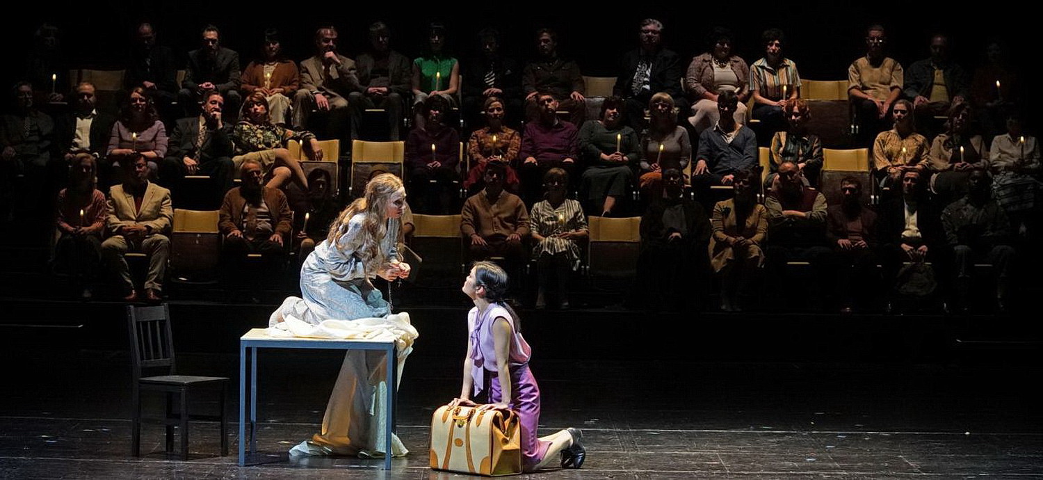 Eine schicksalshafte Oper ganz neu erlebt“ verspricht das Musiktheater im Revier mit Blick auf die Premiere von La forza del destino. Was am Ende vor allem im Gedächtnis bleibt, ist ein massiver Buh-Sturm, den man so in diesem Theater selten erlebt hat. Er gilt Intendant und Regisseur Michael Schulz und seinem Team, die die negative Reaktion fast provokant erwidern. Doch von Anfang an, denn weder ist die Inszenierung diese Buh-Kaskade wert, noch ist so innovativ, wie sie gerne gelten würde. Wenn man nur von der ersten Hälfte spräche, dann müsste man die Konzentration von Schulz und Bühnenbildner Dirk Becker loben. Zunächst ist man noch etwas verwundert über die Prozession, die Aufmerksamkeit im Foyer noch vor der Vorstellung auf sich zieht. Zu den Klängen des Introitus aus Monteverdis Marienvesper betritt sie die Bühne. Leonora wird von ihrem Vater hingebungsvoll wie eine Madonna ausstaffiert. Ihren Liebhaber, Don Alvaro, ein Fremder, von Renée Listerdal gekleidet wie ein Geselle auf der Walz, darf sie nicht lieben. Er wird von der Menge gemieden, die beobachtend auf einer Tribüne sitzt, kommentiert, agiert. Wie Schulz den Chor über den gesamten Opernabend hinweg einsetzt, ist der große Pluspunkt seiner Arbeit. Auch die Requisiten Stühle und Tische, die Becker als Bühnenbild einsetzt, vermögen mehr zu erreichen als man ihnen auf den ersten Blick zugestehen mag, zumal auch Patrick Fuchs mit der Lichttechnik viel zu den Stimmungen beitragen kann.