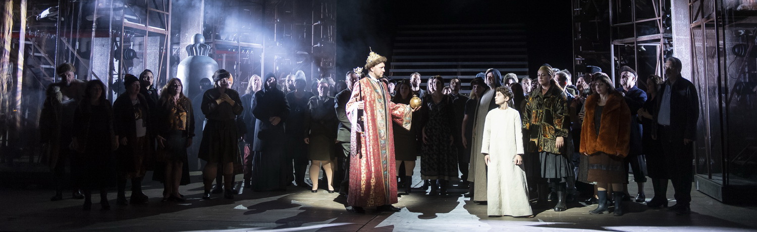 Es ist kein schöner Land in dieser Zeit. Der Emporkömmling Boris Godunow begeht angeblichen Kindesmord, um an die russische Zarenkrone zu gelangen und wird in der Folge nicht nur von seinem schlechten Gewissen eingeholt, sondern auch von einem rachsüchtigen Mönch. Der Gottesmann aus Polen mit Namen Grigori bringt sich als Thronfolger ins Spiel nimmt dabei die Identität des Ermordeten an. Das Grand Théâtre Genève präsentiert Modest Mussorgskis Oper nach dem gleichnamigen Drama von Alexander Puschkin in einem Guss und setzt dabei auf die Urfassung des Komponisten von 1869, die seinerzeit bei der Zensurbehörde in Ungnade fiel. Das ist ein mutiger Schritt, denn die Gründe für das damalige njet sind heute noch nachvollziehbar: Bei der etwas über zweistündigen Variante handelt es sich um ein Männer dominiertes Opus, während die später von Mussorgski überarbeitete und 1874 in Petersburg uraufgeführte Form auch den Frauencharakteren mehr Raum gibt.