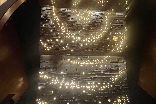 Sitzt man dann im Zuschauerraum, bemerkt man in der zum Haus gehörenden Beleuchtung an der Decke des Saales wirbelnd angeordnete Sterne, als solle man in ein interstellares Geschehen hineingezogen werden – Theater in den Sternen. Im Programmheft des Abends kann man neben mittelalterlichen Miniaturen und Fotos aus Tristan-Filmen nebst Bildern von Wagner und Mathilde Wesendonck auch immer wieder Aufnahmen von fernen Galaxien im Weltall entdecken. Eine über die Zeiten hinausgehende Liebe wird hier angedeutet, etwas konträr zum Werbeplakat und Titelbild des Programmheftes von Diana Markosian, das die Köpfe eines jungen Paares in der Umarmung zeigt: einen jungen Mann von hinten, mit kurzrasiertem, tätowiertem Nacken und Bart sowie ein Mädchen mit langen braunen Haaren, das mit melancholischem Blick und Diamantring am Finger in die Kamera schaut.