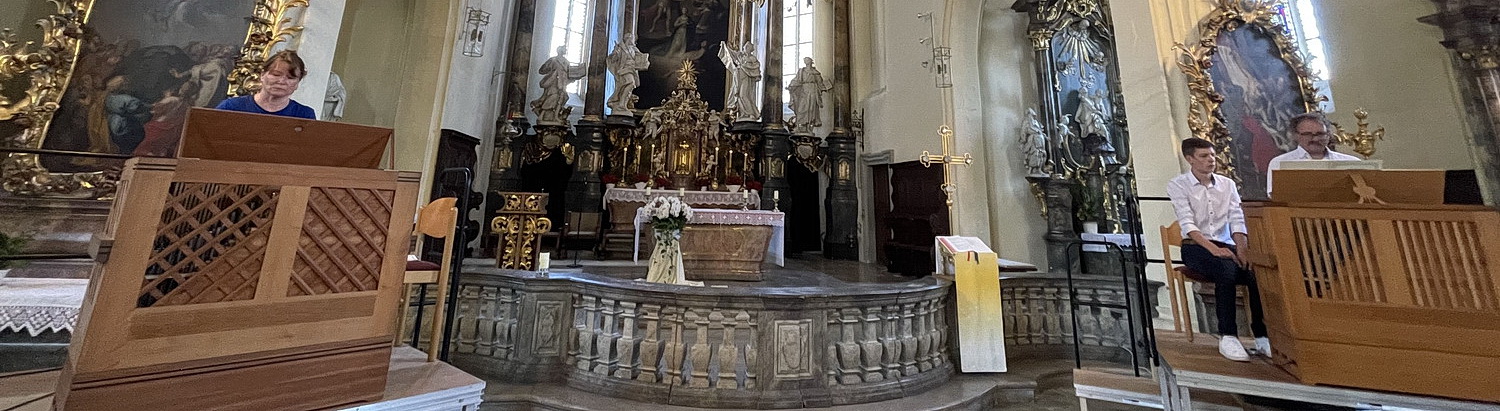 Es ist ein wunderschöner und heißer Frühsommertag im unterfränkischen Gerolzhofen, und in der hiesigen Pfarrkirche, von den Einheimischen auch liebevoll „Steigerwald-Dom“ genannt, steht an diesem Nachmittag ein besonderes Konzert auf dem Plan, nämlich die Eröffnung des Gerolzhöfer Orgelsommers. Seit 25 Jahren erklingt hier die wertvolle und klangschöne Winterhalter-Orgel mit drei Manualen, Pedal und 36 Registern. Beim Orgelsommer 2023 steht das Jubiläum im Vordergrund, und es wird mit insgesamt vier Konzerten festlich begangen. Eröffnet wird der Reigen mit einem Orgelkonzert für zwei Orgeln und vier Hände.