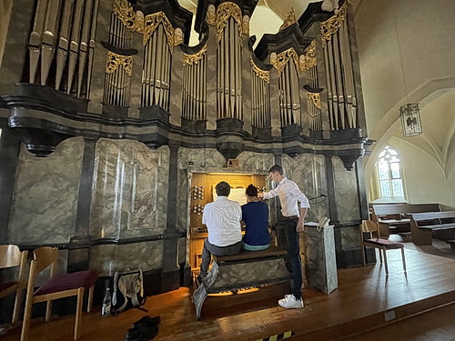 Auch der Orgelschüler Florian Schmidt, der die Registratur der Orgel eingerichtet hat und beim Konzert als Notenumblätterer fungiert, hat seinen Anteil am großen Erfolg des Konzertes. Der Mix aus musikalischer Sommerbrise mit den zwei Truhenorgeln und Herbststurm auf der Winterhalter Orgel machen Lust auf mehr solcher Konzerte.