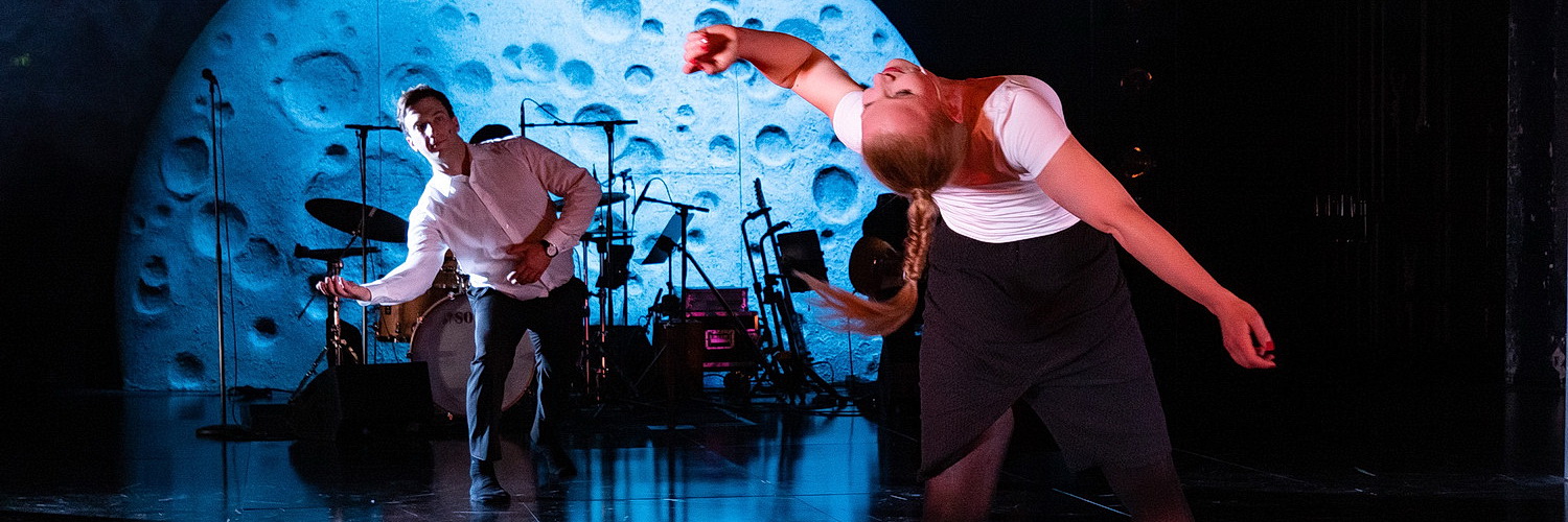 Die sehr aufmerksame Corona-Virus-Organi­sation hat die knapp 100 Personen des Publikums mit großem Abstand auf Parkett und zwei Ränge verteilt, was auch drama­tur­gisch den Abstand zwischen dem Bühnen­ge­schehen und den Besuchern vergrößert. Unver­meidlich. Alexander Wolfs Bühne betont die sich verwi­schenden Merkmale zwischen Realität und Fantastik. Aggressiv wirkende Farbflächen oder verzer­rende Metall­spiegel unter­streichen das Bühnen­ge­schehen oder halten den Zuschauern einen Spiegel vor – Natio­na­listen, Europäer, Antisemiten?
