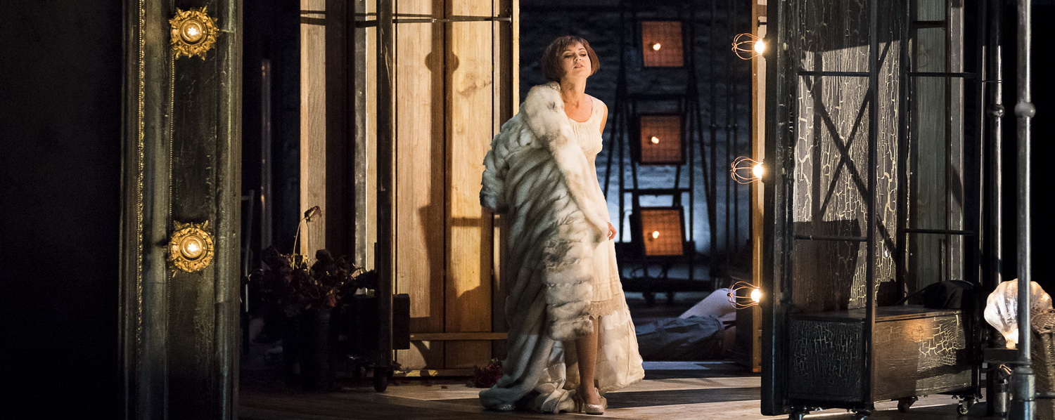 Schon zu Beginn steht er im Spalt des etwas geöffneten Vorhangs. Und auch dann taucht er immer wieder auf und mischt besonders kräftig beim Finale mit. Mit seinem weißgeschminkten Gesicht und nackten Oberkörper ist er eine Mischung aus Mephisto und Conférencier. Ben Baur wertet bei Giuseppe Verdis Il Trovatore, der heurigen Eröffnungsproduktion am Grazer Opernhaus, die Figur des Ferrando enorm auf und lässt ihn zum omnipräsenten Beobachter des Geschehens werden, der auch opportunistisch immer wieder die Seiten wechselt. Zudem transferiert der Regisseur, der auch für die Szenerie verantwortlich zeichnet und bereits in der letzten Saison Charles Gounods Romeo et Juliette hier am Haus inszeniert hat, die krude, schaurige Geschichte von Kindsraub und Brudermord, Liebe, Eifersucht und Rache ins Varieté-Milieu des Berlins der 1930-er Jahre und zeigt sie aufgemotzt mit Ballett in entsprechenden Kulissen als Tanz auf dem Vulkan, die im zweiten Teil aus den Fugen gerät.