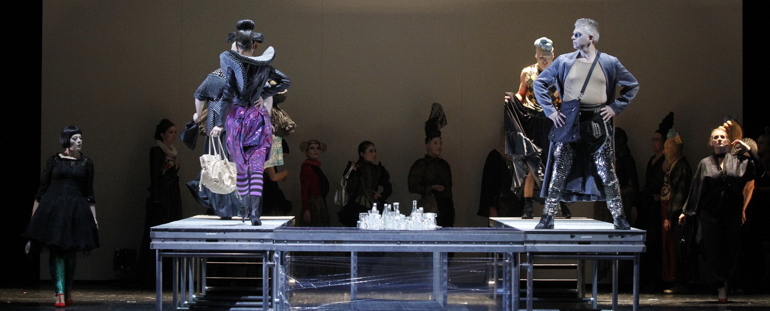Regisseurin Nina Kupczyk deutet die Sehnsucht Rusalkas nach der Welt der Menschen als Ausbruchsversuch eines jungen Mädchens aus der familiären Enge, um in der scheinbar glanzvollen Welt der Super-Modells sein Glück zu finden. Der Catwalk gehört zu den wichtigsten Requisiten der Produktion, und dass die Hexe Ježibaba eine unverkennbare Ähnlichkeit mit Heidi Klum aufweist und die Waldelfen wie fein herausgeputzte Püppchen aus Germanys next Topmodel wirken, überrascht in diesem Umfeld nicht. Und dass der Prinz die Frauen wie Gebrauchsgegenstände benutzt und ablegt, ebenso wenig. Die Regisseurin verliert sich allerdings nicht in oberflächlichen Anspielungen, sondern entwickelt sehr einfühlsam, wie sich das Glück in dieser Traumfabrik als fadenscheinige Illusion einer Fantasiewelt entpuppt, in der es noch kälter zugeht als in den Tiefen des Sees. Rusalka ersehnt sich Wärme und Zuneigung von ihrer Wandlung zur Menschenfrau und erfährt eine Welt ohne Menschlichkeit. Dabei hört Kupczyk sehr genau auf die Musik, die präzise nachvollzieht, wie die unglückliche Meerjungfrau diese Mechanismen allmählich erkennt und sich am Ende in trister Einsamkeit zurückgelassen sieht. Ein Bewusstseinsprozess, den auch der Prinz durchlebt. Doch ebenso zu spät und ohne Happy End.