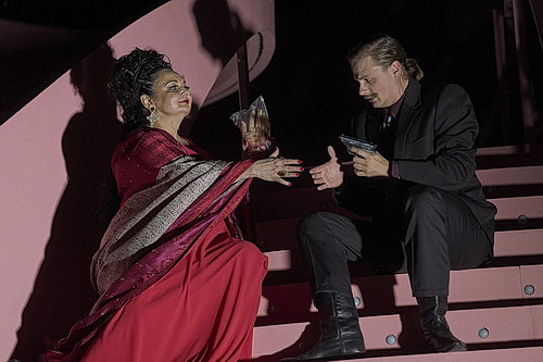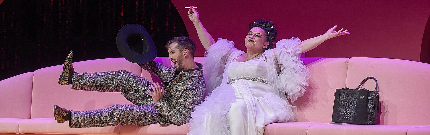 Es ist in Halle die melodienreiche vergnügliche Komödie einer Schar überdimensionaler Egos in einer nicht nur durch die Verlegung nach Las Vegas mit seinem oberflächlichen Glanz an das heutige Amerika erinnernden dysfunktionalen First Family. Für den damals 24-jährigen Händel brachte die Oper den Durchbruch, da er und sein Librettist geschickt eine Gesellschaft präsentieren, die getrieben ist von Machtgier, Eitelkeit, List und Dummheit auf oft komplizierten und von Zufällen geprägten Wegen agiert. Wenn man heute die Nachrichten verfolgt, sieht man, dass das auch heute noch gelingt, wie beim gerade offen vor der Weltöffentlichkeit ausgetragenen Streit der Alphamännchen Trump und Musk. So etwas kommt beim Publikum gut an, das sich darüber das Maul zerreißen kann.