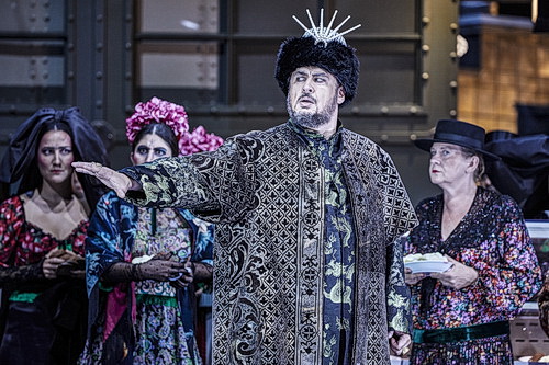 Mussorgskys Oper zeigt einen doppelten Spiegel. Puschkins poetisch-belletristische Struktur des Zerrissenen moralischer Kategorien von Gut und Böse übersetzt Mussorgsky mit widersprüchlichen, ethnischen und liturgischen Zitaten. Die kompositorische, von der damaligen Kritik als Kakophonie diskreditierte Offenheit, die weder einer Zentralperspektive noch einer narrativen Kontinuität von Handlungsbögen folgt, ist eine Steilvorlage für Castorfs assoziierende Inszenierungsideen. Seine Regiearbeiten sind, wie seit 30 Jahren an der Staatsoper Hamburg oder wie mit seinem Der Ring des Nibelungen in Bayreuth von 2013 bis 2016, immer für eine Überraschung gut.