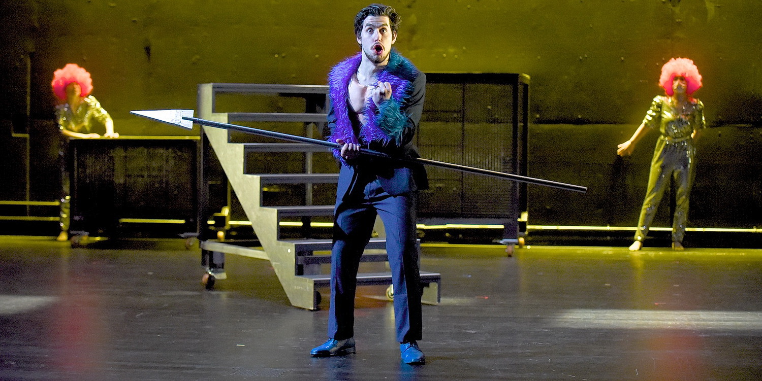Der Wotan von Laurence Kalaidjian ist trotz seines Kostüms mit künstlichem Bodybuilder-Oberteil unter mittelblauem Anzug sowie trotz seiner intellektuellen Winkelzüge ein eher feinsinniger Göttervater, der immer wieder nachgerade hilflos um sich blickt und zum Beispiel bei Loge um Rat sucht. Mit seinen 25 Jahren vermag Kalaidjian stimmlich und darstellerisch die Balance zwischen ruchlosem Machtanspruch und Verletzlichkeit ausnehmend überzeugend über die Rampe zu bringen.