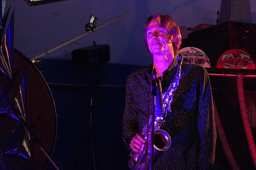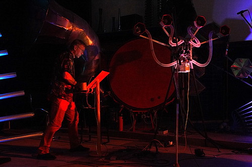 Auch das zweite Konzert eröffnet Schläger mit ein paar Worten, die die Odyssee emotional und inhaltlich vorantreiben. Und man weiß nicht so recht, über was man mehr staunen darf: über die Gelassenheit der beiden Musiker, die hier gerade etwas völlig Neues ausprobieren, oder über die Klänge, die sie produzieren. Wobei die Entscheidung im zweiten Konzert da leicht fällt, denn im Dialog von Oktopussi und Saxofon fällt die Maschine noch deutlich hinter die Erwartungen zurück. Allerdings ist das Publikum so fasziniert von den Eigenbewegungen der luftzuführenden Schläuche, dass der musikalische Aspekt in den Hintergrund tritt. In der Zugabe wird Schläger das Gerät noch einmal zu Höchstleistungen treiben.
