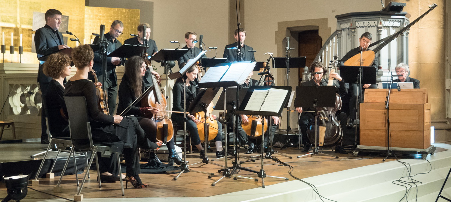 Die Kreuz­kirche ist nicht ohne Grund Ausgangs­punkt des viertä­gigen Alte-Musik-Festivals im Ruhrgebiet. Mit ihrer ausge­wo­genen Akustik bietet sie eine großartige Spiel­stätte für kleinere Ensembles und Vokal­musik. Das werden die Musiker am heutigen Abend unter Beweis stellen. Auf dem Programm steht Bibel-Literatur, die von verschie­denen Kompo­nisten des 17. Jahrhun­derts auf unter­schied­liche Weise inter­pre­tiert wird, in Kombi­nation mit rein instru­men­talen Werken. Den Beginn macht das Dixit dominus von Francesco Cavalli als mehrstim­miger Chorgesang mit instru­men­taler Begleitung, gefolgt von Exaudi deus von Alessandro Grandi, einem geist­lichen Konzert für fünf Stimmen und Basso continuo. Die Sonate für zwei Violinen, Viola da gamba und Basso continuo von Heinrich Ignaz Franz Biber leitet den Chorgesang Ach Herr, strafe mich nicht in deinem Zorn von Heinrich Schütz ein, ehe dann zum ersten Mal das Dies irae in einer Vertonung von Giovanni Legrenzi ertönt.