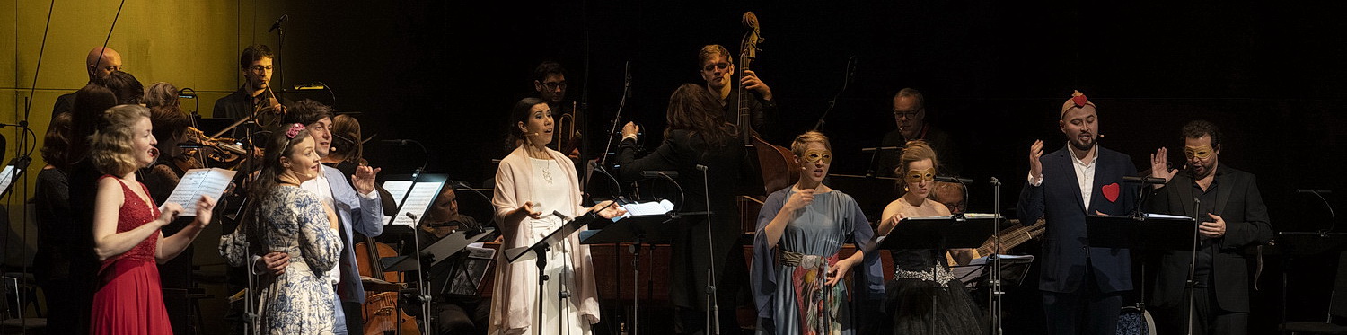 Das Libretto spielt mit viel Esprit auf der Klaviatur menschlicher Gefühle und Schwächen, spart auch nicht an Bühnenzauber, wenn Amor und der Höllenfürst auftreten. Nils Niemann versteht es geschickt, der konzertanten Aufführung im gut besuchten Kulturforum mit wenigen Gesten und Accessoires szenisches Leben einzuhauchen. Wobei die stärksten Impulse von der Musik ausgehen. Und da führt Dorothee Oberlinger ihr phänomenales Ensemble 1700 und die nicht minder zu Hochform auflaufende Solistencrew mit sprudelnder Vitalität durch den zweieinhalbstündigen Abend.