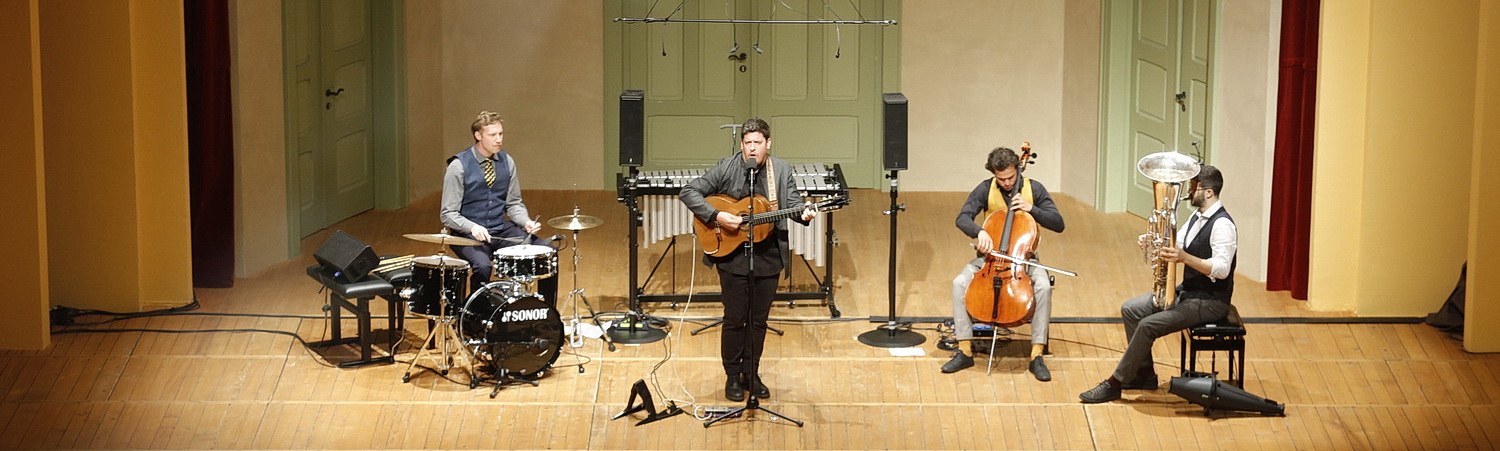 Das Ensemble The Erlkings präsentiert das deutsche Kunstlied in neuen Fassungen. Sänger Bryan Benner, in Florida geboren, in Schottland und Italien studiert und derzeit in Wien lebend und dort das Musikleben im Sinne des Komponisten bei Schubertiaden in Wirtshäusern gehörig aufmischend, hat deutsche Kunstlieder in seine Muttersprache Englisch gereimt übersetzt. Gemeinsam mit Ivan Turkalj am Cello, Simon Teurezbacher an der Tuba und Thomas Toppler am Schlagzeug und Vibrafon stellt er sie in einer Fassung dem Publikum vor, die sich zwar relativ eng am Klavierauszug von Schubert orientiert, aber eben nicht nur durch das Englische, sondern auch durch die ungewohnte instrumentale Besetzung anders klingt.