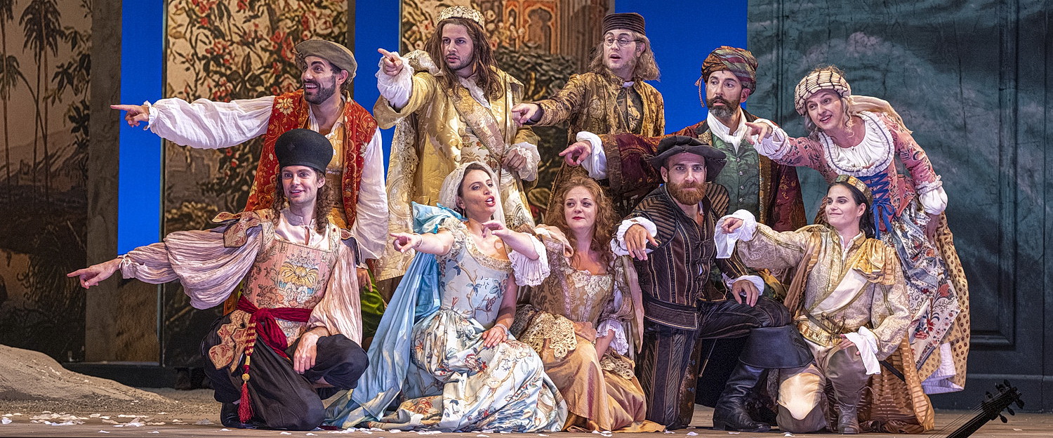 Federico Sacchi setzt mit seiner Bassstimme als Artaxerse kraftvolle Akzente. Dramatik erzeugt Emoke Barath in der komplexen Hosenrolle des Tolomeo, der sich als Celinda verkleidet am persischen Hof einschleicht. Kraftvoll expressiv versteht sie mit ihrem Sopran auf sich aufmerksam zu machen. Präsenz gewinnt Alberto Allegrezza in der Rolle der Dirce. Mit seinem sonoren Tenor gibt er der alten, immer noch lüsternen Amme kokette humoristische Züge. Als Tragikomödie wollte auch Cesti sein Werk verstanden wissen. Den Anspruch versucht Stefano Vizioli in seiner Regie umzusetzen. Einfach barock anmutend ist das Bühnenbild von Emanuele Sinisi, das sich mit geschickter Ausleuchtung und ein paar Details in verschiedenstes Ambiente versetzen lässt. Die Kostüme von Anna Maria Heinrich entsprechen der Entstehungszeit des Werkes. So liegt viel Aussagekraft in der Personenregie, die schwungvoll ohne Übertreibung die Handlung vorantreibt.