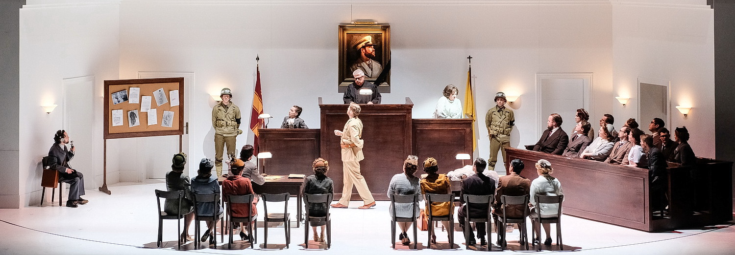 Die Händel-Festspiele sind zumeist Orte der Begegnung mit großartigen Countertenören. Der Altus James Hall kann an diese Tradition nicht anknüpfen. Unverschuldet, weil Händel dieser Nebenrolle schlicht zu wenige musikalische Optionen schenkt. Mit No longer fate relentless frown beweist er gleichwohl sein Können. Effektvoll ist die Idee des Regisseurs, mit der stummen Nurse eine zusätzliche Rolle zu kreieren. Annika Stefanie Netthorn erfüllt diesen Part mit stoischer Ruhe und gelegentlich einer Mimik, die in jede Filmkomödie von Wilder passen würde. Was in der ausgebildeten Musicalsängerin und Tänzerin steckt, wird in dem famosen Stepptanz offenbar, den sie, Sekunden zuvor noch „graue Maus“, jetzt im knalligen Rot, im Gerichtssaal vollführt.