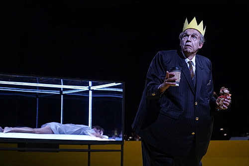 Der Plot bietet auch für die Sänger dankbare Rollen und wirkungsvoll-komische Auftritts­mög­lich­keiten.  Der König und die Berater und Ärzte des alten Hofstaats sind als übermäßig dicke, manchmal kaum noch bewegungs­fähige Charaktere kostü­miert, wobei alle Akteure neben den gesang­lichen Leistungen mit liebe­voller, jeweils indivi­duell ausge­prägter Komik agieren, die nie statua­risch oder allzu typisierend wirkt. Da wird eine sehr empathische und mit den einzelnen Künstlern erarbeitete Perso­nen­führung sicht- und spürbar, die auch erlaubt, dass der eine oder andere an besonders komischen Stellen seinem Affen Zucker gibt und ordentlich auftrumpft – und das beherr­schen alle hervor­ragend und mit Freude.