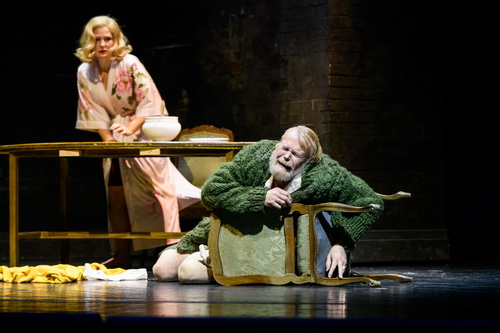 Unein­ge­schränkt glücklich wird man diesmal auch mit dem Sänger­ensemble: Svetlana Sozdat­eleva verausgabt sich darstel­le­risch und stimmlich bis an ihre Grenzen. Sie ist eine ungemein fasset­ten­reiche Katerina Ismailowa, von unbefriedigt über lasziv bis exzessiv. Der Arbeiter Sergej wird vom virilen Alexej Kosarev kraftvoll und höhen­sicher gesungen. Gleb Nikolsky singt den despo­ti­schen und eroto­ma­ni­schen Vater Boris mit starker, bösar­tiger Präsenz und Stimm­gewalt. Joshua Owen Mills ist sein schwäch­licher Sohn Sinowij mit hellem Tenor. Iris van Wijnen ist in gleich zwei Partien als gequälte Axinja und laszive Sonjetka zu erleben. Auch das übrige Ensemble, bei dem der Polizeichef, gesungen von Karl Huml, der Pope von Jisang Ryu und der Schäbige von Marlin Miller hervor­stechen sowie der Chor des Hauses, dessen Einstu­dierung Günter Wallner besorgte, lassen keine Wünsche offen. Und was diesmal besonders auffällt: Alle sind zudem großartige Darsteller.