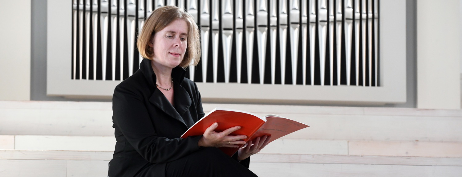 Drei Gesprächsrunden unter der Moderation von Bernd Heyder ergänzen die musikalischen Beiträge, für die man aus der Klosterkirche Knechtsteden in die Christuskirche Dormagen umgezogen ist. Ein moderner, heller Sakralbau mit einer vor drei Jahren größtenteils erneuerten Orgel, die zudem so umpositioniert wurde, dass sie nicht an der Rückwand im Verborgenen prangt, sondern an der Front, so dass Prospekt und Organist für die Zuhörer und Gottesdienstbesucher ständig sichtbar bleiben. Zudem hat Architekt Aaron Werbick darauf geachtet, dass ansonsten in der Regel verborgene Teile der Orgel als gestalterische Elemente in den sichtbaren Prospekt eingearbeitet wurden. Mit 2300 Pfeifen und 41 Registern ist das Instrument vorzüglich ausgerüstet für ein breites Repertoire, wobei sich die Gast-Organistin Beate Rux-Voss besonders über die weichen „Streicher“ und das nur selten zu findende „Horn“ im Schwellwerk freut.
