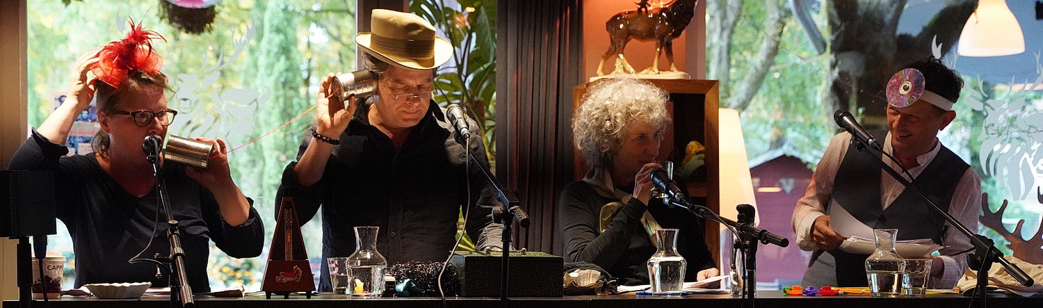 Auch Jörg Kernbach vermag sich der Faszination des „Kopfkinos“ nicht zu entziehen. Im Restaurant Wildwechsel im Kölner Stadtteil Dünnwald installierte er das Live-Hörspiel. Die Idee so einfach wie genial. Schauspieler lesen von ihm adaptierte Texte, die mit allerlei Geräuschen, ein wenig Musik und allerlei angedeuteten Verkleidungen ausgeschmückt werden. Spaß und Humor sind dabei ausdrücklich erlaubt. Der Einfall war gut, das Publikum zeigt sich seit Jahren begeistert von diesen Veranstaltungen. Wie zum Beispiel am 10. Oktober 2017, als das Stück 16 Uhr 50 ab Paddington nach dem gleichnamigen Film auf der Grundlage des Romans Murder she said von Agatha Christie erstmals aufgeführt wurde. Und bis heute hat die Begeisterung nicht nachgelassen. Das Restaurant ist auch an diesem Abend bis auf den letzten Platz gefüllt. Gewiss, der Eintritt ist frei – am Ende werden Spenden gesammelt – aber es gibt kaum einen Gast, der die Aufführung nicht auch mit einem Abendessen verbindet. Eine wunderbare Win-win-Situation. Für das nötige Reglement haben die Gäste inzwischen längst selbst gesorgt, indem sie so früh eintreffen und alle Plätze besetzen, dass das Essen bis zum Beginn der Aufführung verspeist ist und die nötige Ruhe einkehren kann. Zu diesem Zeitpunkt ist der lange Tisch mit Mikrofonen und Accessoires längst an der Längsseite des Speisesaals aufgebaut. Wieder einmal in diesem Jahr erlaubt das „Sommerwetter“ keine Open-Air-Veranstaltung, als die das Live-Hörspiel eigentlich angelegt ist. Die Vorfreude der Besucher leidet darunter keineswegs.