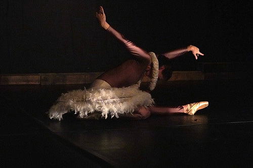 Hupp ist diejenige, die sich dem Schwa­nen­gesang aus dem Karneval der Tiere von Camille Saint-Saëns mit nahezu vollendeter Kunst­fer­tigkeit widmet. Ihr Kostüm in Form eines Tütü und eines Schwa­nen­halses zeigt, dass es aber nicht gar so ernst gemeint ist mit der Aufführung – und der geknickte Spagat am Ende des Tanzes tut sein Übriges dazu. Humor, Poesie, Selbst­er­kenntnis und eine gesunde Portion körper­licher Ertüch­tigung gerinnen zu einem unver­gess­lichen, appetit­lichen Abend, der die zum Leben erfor­der­liche Melan­cholie wohldo­siert hinzufügt.