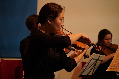 Interessanter kommen die beiden Werke des Hauptteils daher. Robert Lannoy verbrachte seine „besten Jahre“ in Kriegsgefangenenlagern, anstatt seinem Beruf als Komponist nachgehen zu können. Sein bekanntestes Werk ist vielleicht die Filmmusik zu Henri Cartier-Bressons Film Le Retour, die Rückkehr, in dem der Fotograf über die Befreiung Europas berichtete. Nach dem Krieg wurde er Leiter des Konservatoriums von Lille. Zeit seines Lebens faszinierte ihn die zeitgenössische Musik. Zwei Stücke von ihm erklingen bei Les Lumières: La mort de Roger Salengro, der Tod des Roger Salengro, und ein Lamento. Werke im expressiven Spannungsfeld von Wut und Trauer. Wunderbar vorgetragen, leidet die Musik unter der arg trockenen Akustik des Raums. Da kann man sich vorstellen, dass das in der Kirche in Lille noch mal ganz anders geklungen hat.
