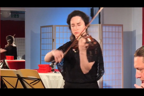Derweil haben die Kölner ihr Angebot permanent verbessert und professionalisiert. Technische Unzulänglichkeiten wurden vermindert, Christina von Richthofen spricht sich zunehmend frei und auch die Lähmungen durch das Corona-Virus oder besser: die Auflagen seitens der Regierung werden allmählich weniger. Der rechte Zeitpunkt, Hayley Bullock und Dmitrij Gornowskij einzuladen. Die Geigerin und der Cellist sind auch privat ein Paar, nachdem sie sich auf einer Konzertreise in Australien kennen- und lieben gelernt haben. Heute spielen beide in der Kölner Kammerphilharmonie, die regelmäßig unter anderem nach Australien reiste, bis Corona den Reisen einen Riegel vorlegte. In den vergangenen Monaten waren die beiden Musiker also in ihrem Haus in Köln „gefangen“, hatten ausreichend Gelegenheit, gemeinsam neue Stücke einzuüben und sich auf ihren Auftritt im Hinterhofsalon vorzubereiten. Ein zynischer Unterton darf hier durchaus gehört werden. Davon lassen sich die beiden Musiker aber wenig anmerken.