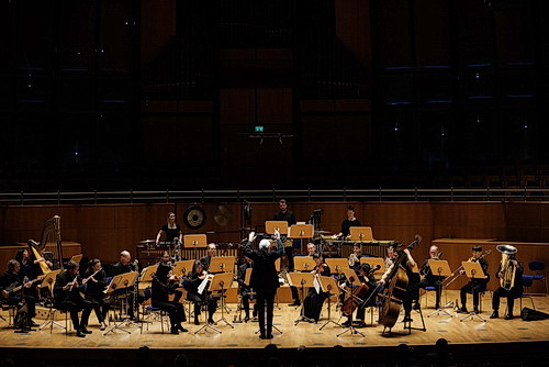 Spielen in, spielen mit den Formationen auch bei Rihm, wenn er aus dem Tutti-Klatscher zu Beginn einen Balztanz beider Violinen hervortreten lässt, bald die feierliche Linie des Kontrabasses daruntersetzt, ihn laut werden, Sprünge absolvieren lässt, stets in Gestalt der vom Komponisten so geliebten Sechzehntel-Triolen, was natürlich aufs Tempo drückt. Nach und nach werden andere Leuchtfarben, Leuchtpunkte eingeführt. Bratsche, Cello, Flöten, Klarinetten, erst nach einer gefühlten Ewigkeit Schlagwerk und Blech. So schwillt der Korpus an. Die Streicher mit repetitiven Pizzicati, ein verbissen sich aufspreizendes Englischhorn, dazu das Gehämmerte aus anderen Ecken des Orchesters, das mal in akzentuierten, dann in vermurmelten Enden mündet, was über weite Strecken erkennbare Lustgefühle im Orchester auslöst. So haben wir ja noch nie gespielt!