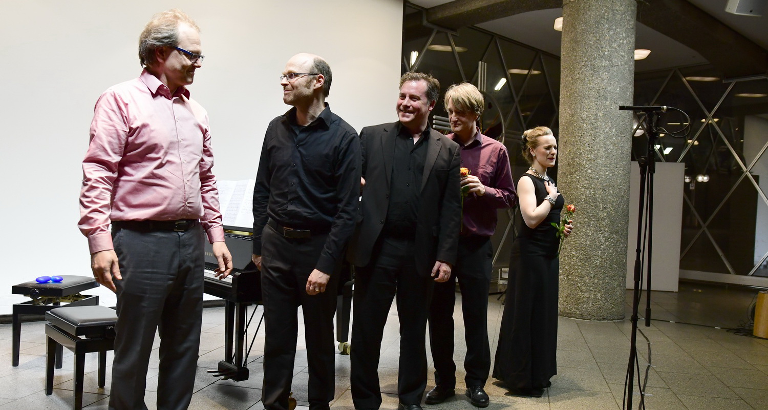Das Publikum ignoriert den um zehn Minuten verspäteten Beginn des Abends ebenso wie die absolut lieblose Ausleuchtung der „Bühne“. Stattdessen genießt es Humor, Dramatik, Gefühl und die sehr intensive Auseinandersetzung sowohl der Komponisten als auch der Sänger mit dem Material, die in jedem Lied spürbar wird. Schaute man in die Tiefe der Kompositionen, gäbe es sicher den einen oder anderen Diskussionsbedarf. Aber so weit sind wir noch lange nicht. Vorerst darf das Publikum dankbar sein, solche Abende überhaupt zu erleben. Am Vorabend des Forums neue Musik, das der Deutschlandfunk in Köln am kommenden Wochenende ausrichtet, ein ganz wichtiges Signal in Richtung der Aufführungspraxis zeitgenössischer Musik. Bravo für die Veranstalter, Bravo für die Künstler sagt auch das Publikum.