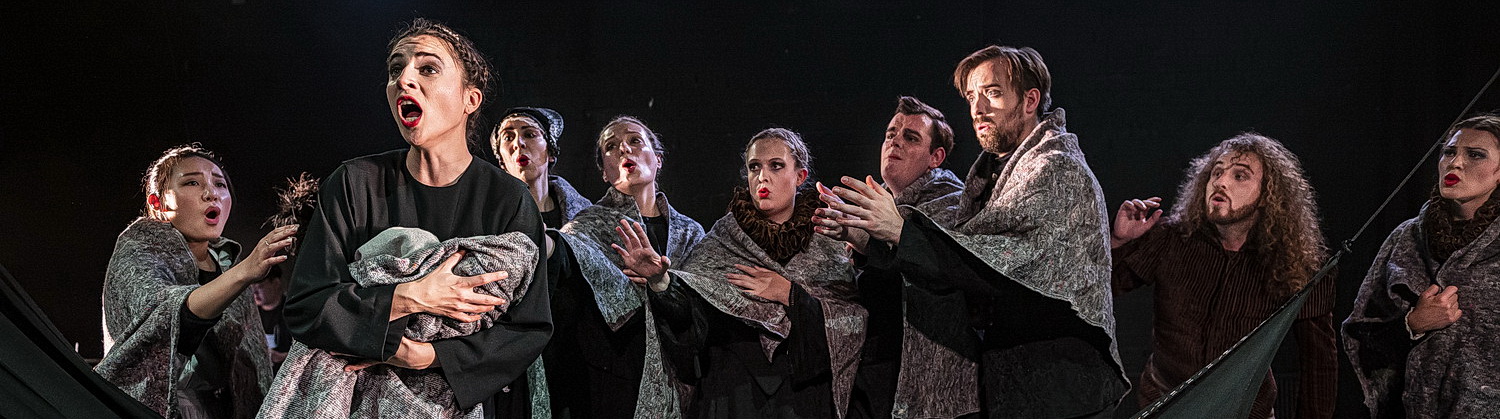 Bassbariton Thomas Huy taucht nach der Aufführung, noch im Kostüm, kurz vor dem Theater auf. Irrlichternd blickt er in das Dunkel der Straße. „Ich habe gerade mein Kind und meine Frau verloren. Ich muss mich erst mal erholen“, sagt der Sänger, der gerade eben noch den eindrucksvollen Schlussauftritt absolvierte. Auf diesem Niveau findet die Uraufführung statt. Die Studenten der Musikhochschule Köln spielen und singen mit Leidenschaft. Zuvörderst ist sicher Bettina Schaeffer zu nennen, die Josephe inbrünstig und nuanciert singt. Ein Volltreffer in jeder Beziehung. Juliane Bogner als Constanze, Johanna Risse in der Rolle ihrer Schwester Elisabeth erfüllen ihre Rollen ebenso beglückend wie die chorisch in Mehrfachrollen auftretenden Yewon Kim, Céline Kammin, Carolin Glomb und Silja Bothe. Opernsänger zu werden, ist in Deutschland in den letzten Jahren immer schwieriger geworden. Aber welch steiniger Weg vor diesen vielversprechenden Nachwuchstalenten liegt, vermag man sich derzeit noch nicht vorzustellen. Es ist zu hoffen, dass sich hier Perspektiven ergeben, die derzeit kaum absehbar sind.