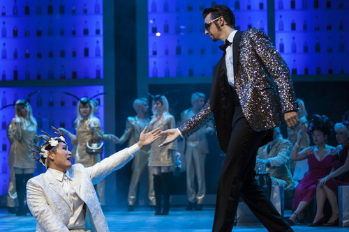 Schauspielerisch geben ohnehin alle ihr Bestes. Und in den meisten Fällen reicht das auch. Hin und wieder ist bei allen eine gewisse Distanz zur Rolle zu bemerken, was nur allzu verständlich ist. Tenor Marco Jentzsch imponiert auch dann, wenn er im roséfarbenen Morgenmantel antreten muss. Claudia Rohrbach ist anerkannt als Meisterin ihres Fachs und bereitet auch viel Freude als Adele. Dass sich dennoch Ungenauigkeiten einschleichen, liegt vermutlich am Premierenfieber. Enttäuschend ist Countertenor Kangmin Justin Kim als Prinz Orlofsky als Sänger; als Darsteller gibt er sich viel Mühe, veralbert durch Regie-Tanz-Einfälle. Oliver Zwarg gibt den Gefängnisdirektor rollengerecht, bis zum Kotzen. Schön, dass er sich beim Schlussapplaus bei Schwaiger entschuldigt. Denn das möchte das Publikum am liebsten auch.