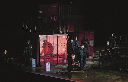Die Emphase, mit der Roth eine effekt­volle Basis für eine von Leiden­schaft, Entsagung und Verklärung getragene Oper vom Format des Holländers schafft, wird auf der Bühne aller­dings nicht erwidert. Gäbe es einen Preis für das tristeste Bühnenbild: Adeline Caron hätte ihn mit der Kulisse ihres herun­ter­ge­kom­menen Contai­ner­hafens verdient. Vor dem Orchester prangt ein leeres Holzpodest, das immerhin dem großen Chor viel Platz bietet. Die Holländer-Mannschaft vegetiert links in rostigen Containern, rechts fügt sich die schmucklose Komman­do­brücke des norwe­gi­schen Schiffes an. Über dem Orchester ist ein Schiffsgang samt einer Reling angebracht. In der Dispo­sition durchaus geschickt, in der Ausführung aber fad und stimmungslos.