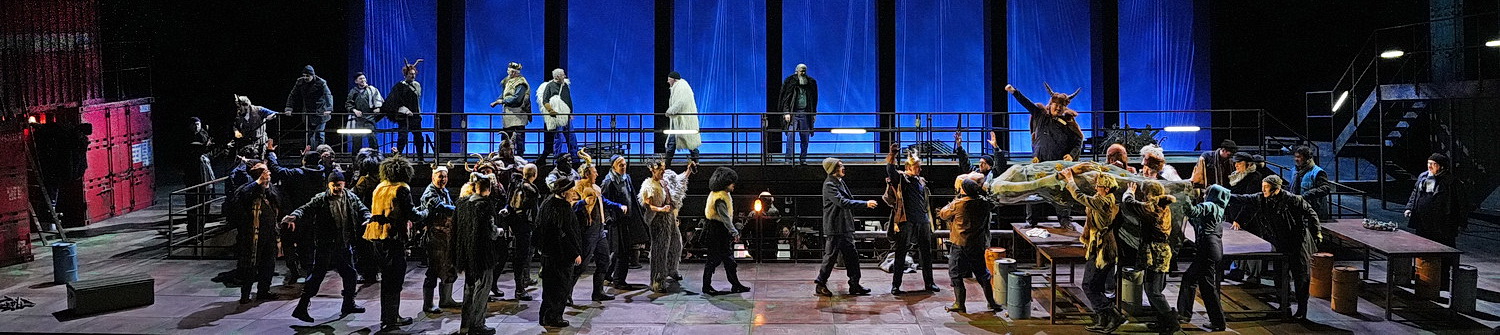 Die Emphase, mit der Roth eine effekt­volle Basis für eine von Leiden­schaft, Entsagung und Verklärung getragene Oper vom Format des Holländers schafft, wird auf der Bühne aller­dings nicht erwidert. Gäbe es einen Preis für das tristeste Bühnenbild: Adeline Caron hätte ihn mit der Kulisse ihres herun­ter­ge­kom­menen Contai­ner­hafens verdient. Vor dem Orchester prangt ein leeres Holzpodest, das immerhin dem großen Chor viel Platz bietet. Die Holländer-Mannschaft vegetiert links in rostigen Containern, rechts fügt sich die schmucklose Komman­do­brücke des norwe­gi­schen Schiffes an. Über dem Orchester ist ein Schiffsgang samt einer Reling angebracht. In der Dispo­sition durchaus geschickt, in der Ausführung aber fad und stimmungslos.