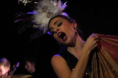 Denn Michael Gerihsen hat eine wunderbare Melange der Musik jener Zeit arrangiert und um eigene Stücke ergänzt. Da wähnt man sich schnell in einem der Vergnügungslokale, in denen der Charleston seine große Zeit feiert, fühlt sich an die Balladen der Dreigroschenoper erinnert oder möchte auch schon mal mitsingen, wenn es heißt Ich küsse ihre Hand, Madame. Kaum hat Andreas Durban seine Begrüßung beendet, entsteht so im Publikum das Gefühl, in einem Varieté-Theater angekommen zu sein, in dem man damals keine Angst vor wilden Stilmischungen hatte. Die Studenten im Orchester liefern unter dem hochaufmerksamen Dirigat von Stephan Wehr eine präzise und liebevolle Interpretation ab.