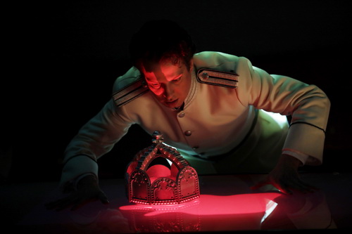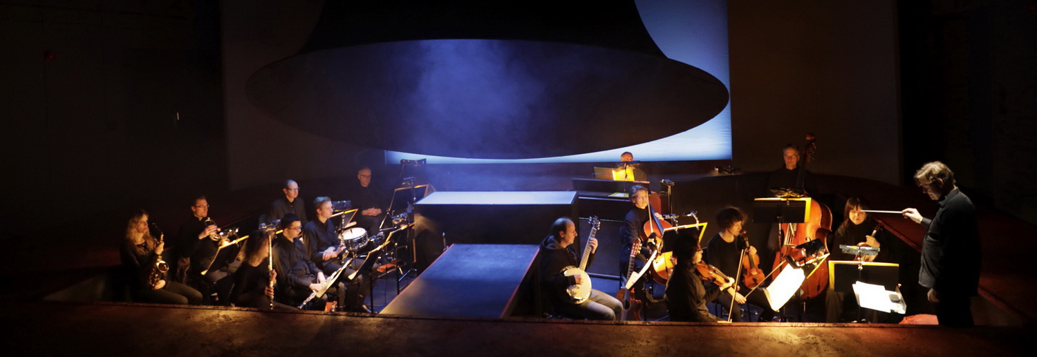 Aufgeführt wird das Stück in der Außenspielstätte am Offenbacher Platz direkt neben der Dauerbaustelle der Kölner Oper. Ein gläsernes Gebäude, das ideale Voraussetzungen für Kammeropern solcher Art bereithält. Im Mittelpunkt der Bühne residiert das tief gelegte Orchester. Eine riesige Glocke, die zugleich als Lautsprecher des ominösen Kaisers dient, ragt drohend über die Musiker. Die Darsteller agieren auf Stegen, die das Orchester umrahmen und teilen. Eike Ecker, die als Regisseurin vor allem viel Erfahrungen mit dem Kindertheater sammeln konnte und als Spielleiterin etliche große Opernproduktionen mitbetreut hat, lässt in den sparsamen Dekorationen und grotesken Kostümen von Darko Petrovic ein Szenario wie aus einer mittelalterlichen Totentanz-Illustration erstehen, begnügt sich letztlich jedoch mit einer recht braven Wiedergabe der Handlung, ohne die überspitzte Drastik des Stücks auszuspielen. Dadurch kann auch nur selten vom bisweilen trockenen Leerlauf mancher Gesangspassage abgelenkt werden.